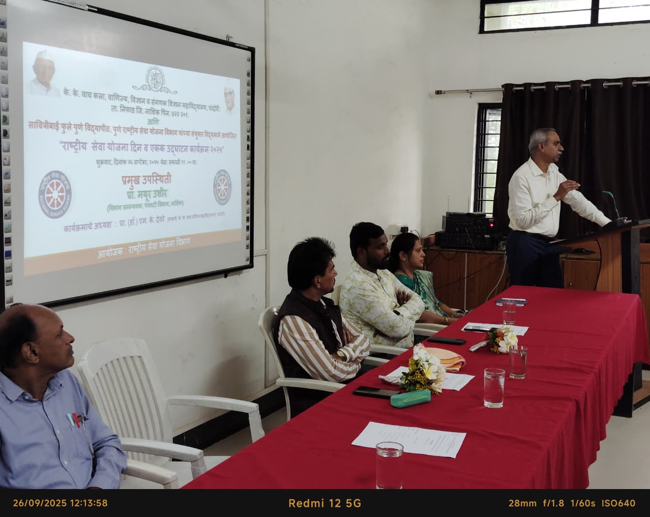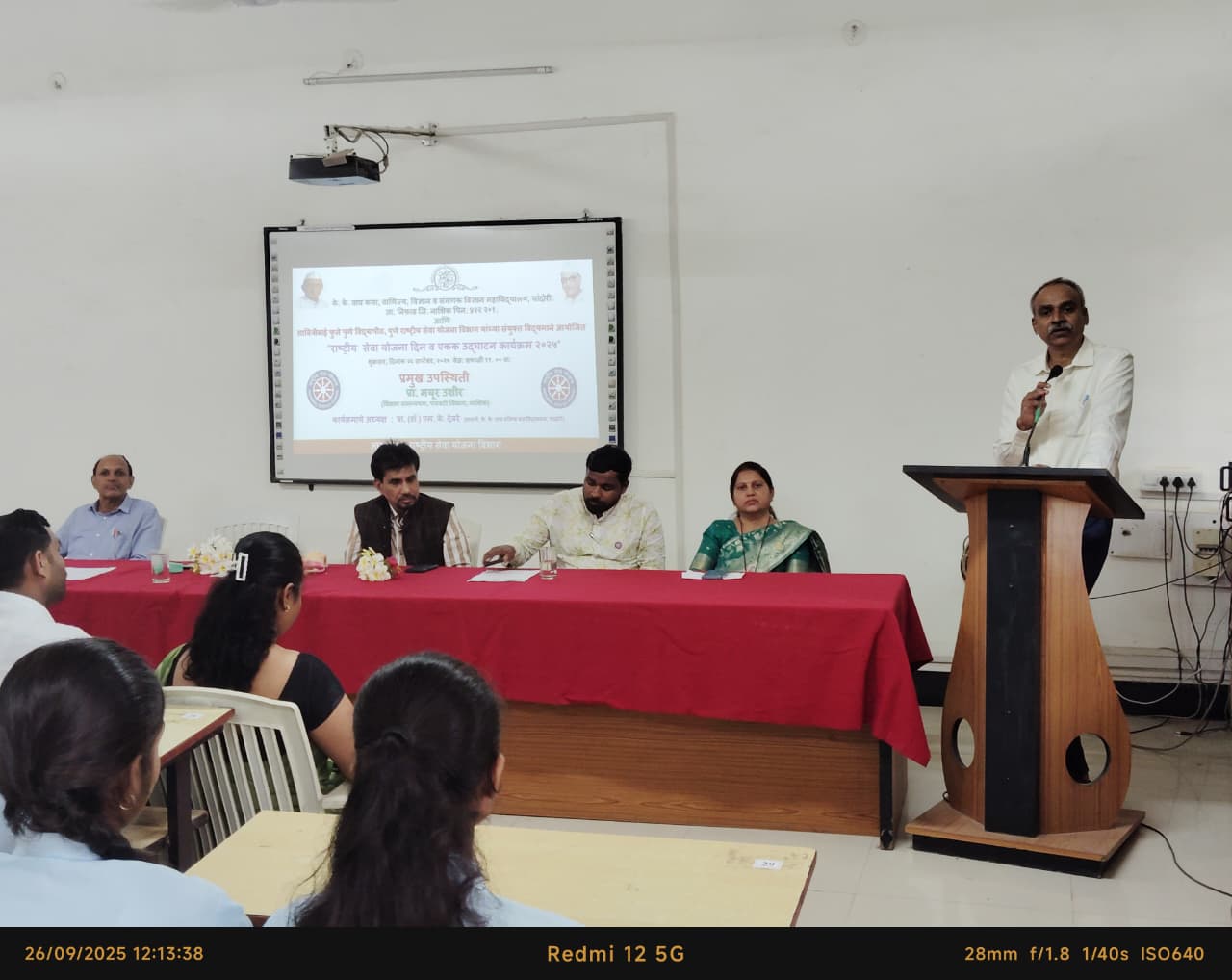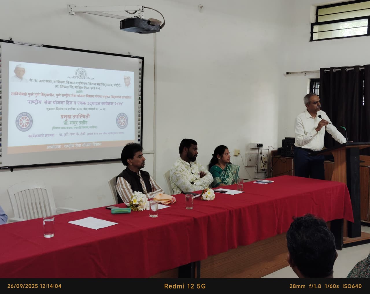 All Photos-"राष्ट्रीय सेवा योजना दिन व एकक उद्घाटन कार्यक्रम २०२५" प्रमुख उपस्थिती : प्रा. मयूर उशीर (विभाग समन्वयक, पंचवटी विभाग, नाशिक) कार्यक्रमाचे अध्यक्ष : प्रा. (डॉ.) एम. के. देवरे (प्राचार्य, के. के. वाघ वरिष्ठ महाविद्यालय, चांदोरी)