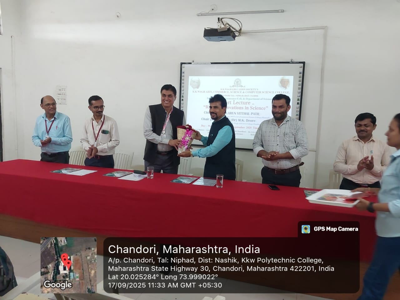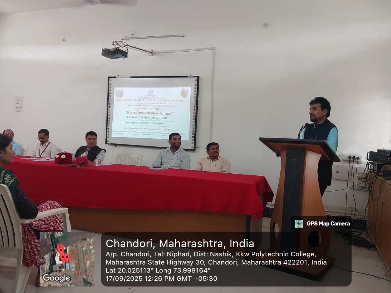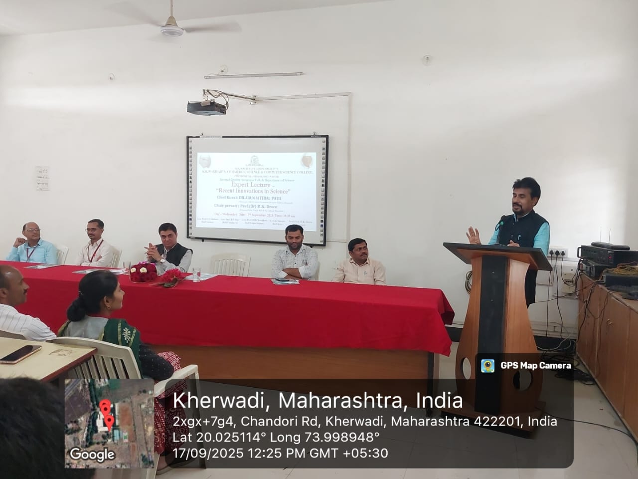 Inauguration of Science Association & AVISHKAR Research Competition 2025 Expert Talk on "Recent Innovations in Science" Expert : Dr. Arun Vitthal Patil, (Principal, MGV's A.C.S. College, Manmad)