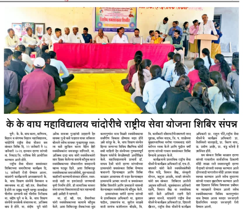 NSS Camp 2025-26 at Daranasangavi News Pune Vaibhav, Lokmat, Deshdoot