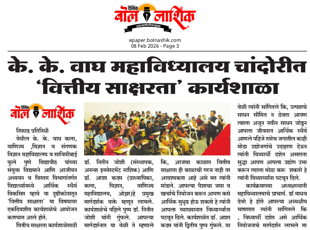 Aajivan Adhyan Vittiya Saksharata Karyashala News Pune Vaibhav, Bol Nashik, Lokmat