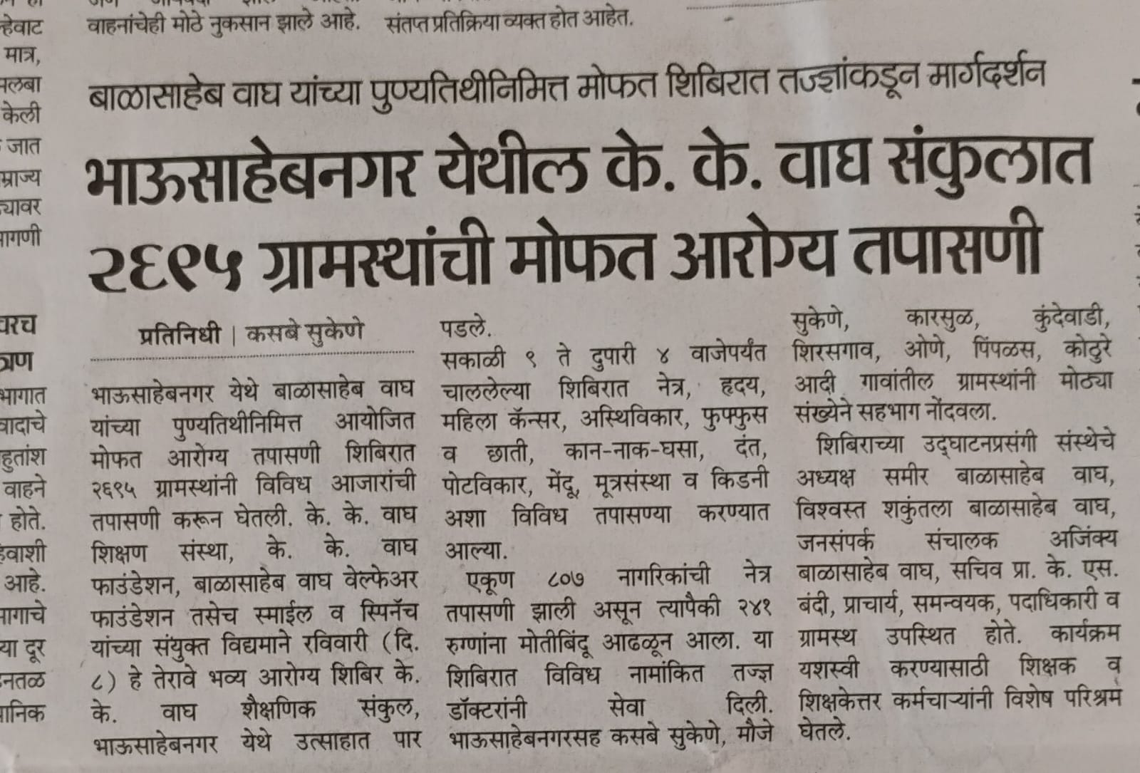 Bhausaheb Nagar Health Checkup Camp News 2026