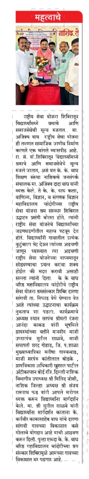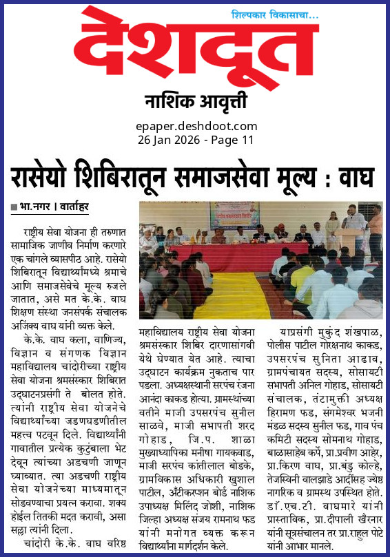 NSS Camp 2025-26 at Daranasangavi News Pune Vaibhav, Lokmat, Deshdoot